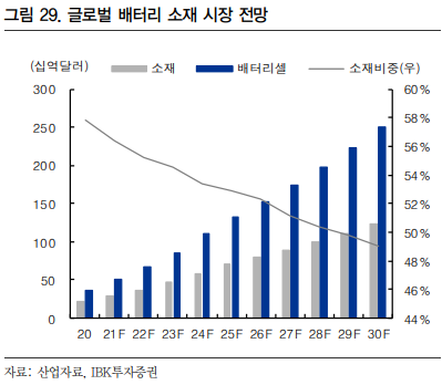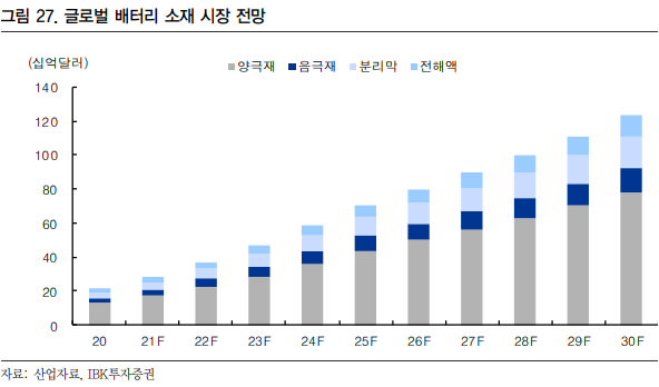 1) 글로벌 배터리 소재 시장은 2030년까지 약 6배 성장이 예상됩니다.