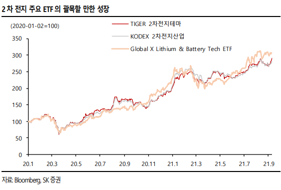 관련 차트를 가지고 현재 2차 전지 시장에서 상승 탄력 강한 ETF와 점진적으로 강하고 오랜 기간 상승 가능한 연금형 투자에 맞는 ETF가 무엇인지 생각해 봅니다. 관련 자료는 IBK 증권과 SK증권의 보고서의 자료를 인용했습니다.